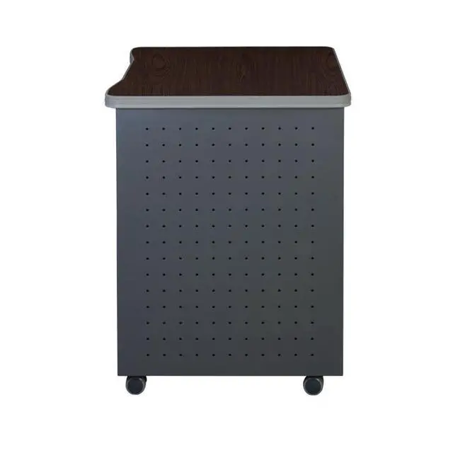 This multipurpose station, ideal for copy machines, printers, or fax equipment, incorporates a protective 9mm edge banding in an elegant gray finish. The surface boasts a durable 1-1/4" high-pressure laminate construction, available in multiple finish options to complement your office décor.