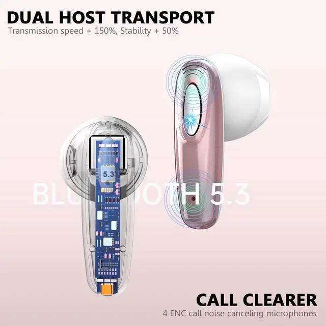 Wireless Earbud, Bluetooth Headphones 5.3 Built in 4 ENC Mic, Hi-Fi Stereo Bass Wireless Earphones