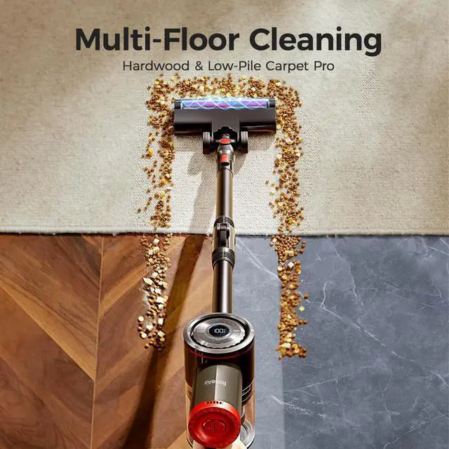 40KPA Suction for All FloorPowered by a 450W motor, the RoneAir cordless vacuum is ideal for home with mixed flooring. Switch between 40,000Pa Turbo Mode for deep cleaning and 29,000Pa Standard Mode for daily touch-ups. It captures pet hair, bread crumbs, and cat litter on hardwood, low-pile carpets, and tilessolving everyday messes effortlessly.