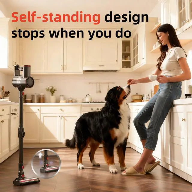 Self-Standing Design for Easy PausesAnswer a call, move between rooms, or handle a quick taskthe RoneAir cordless vacuum stands securely on its own, with no wall mounting needed. For permanent storage, the included wall mount holds the vacuum for easy access. Its stable upright design prevents tipping and dust spills, keeping your floors and vacuum clean and safe.