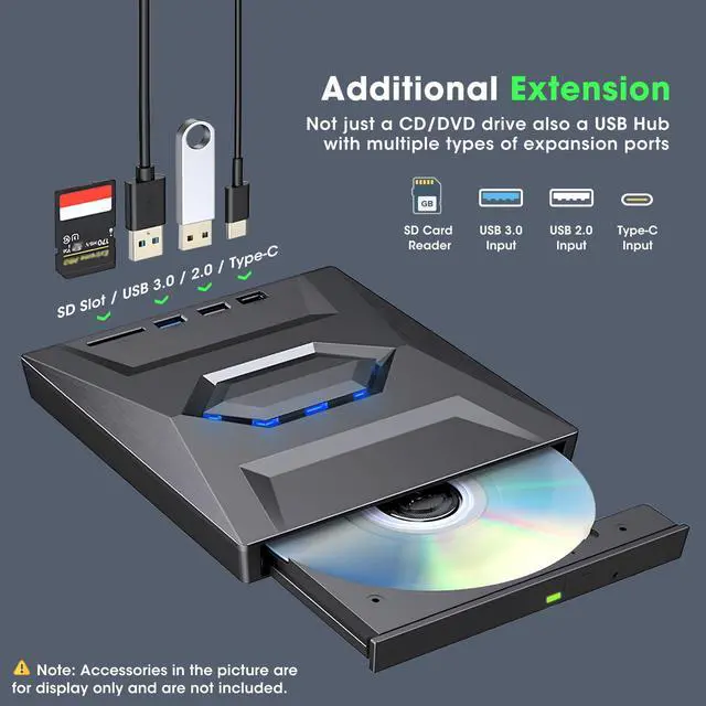 All-in-One External CD/DVD Drive with USB Hub & SD Card Reader – A Must-Have Companion for Modern Laptops
