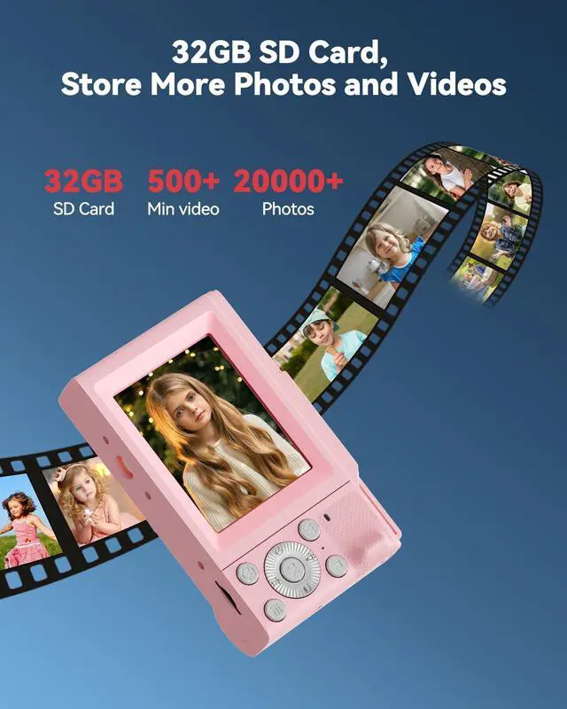 HD Photos & 1080P Video: Equipped with a high-resolution sensor, this kids' camera captures sharp photos and smooth videosperfect for young creators.