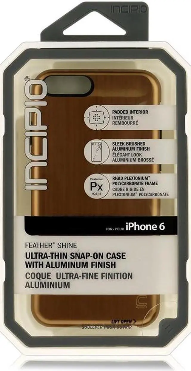 The Incipio feather SHINE Case (Rose Gold) for your Apple iPhone 6, iPhone 6s features a slim, low-profile hard shell design. Using our unique, in-mold decorating technique, the feather SHINE Case features a radio-transparent brushed aluminum finish.The feather SHINE Case features a slim, low-profile hard shell design. The slim design of the feather SHINE Case protects from scratches while also allowing complete access to all ports and buttons. With a smooth brushed aluminum finish, the Feather SHINE Cases will add style to your mobile device. Ultra-light feather design weighs in at 0.6 ounces A rigid polycarbonate frame holds structure and prevents unwanted dents Sleek, low profile protection surrounds your mobile device Protects complete access to all ports and controls