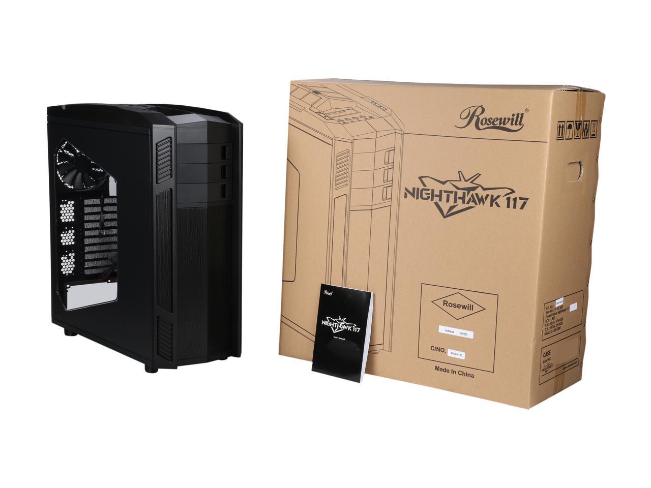 ROSEWILL ATX Full Tower Gaming Computer Case, Supports up to 420mm Long VGA Card, 5 Fans Pre-installed, Fan Speed Control - NIGHTHAWK 117