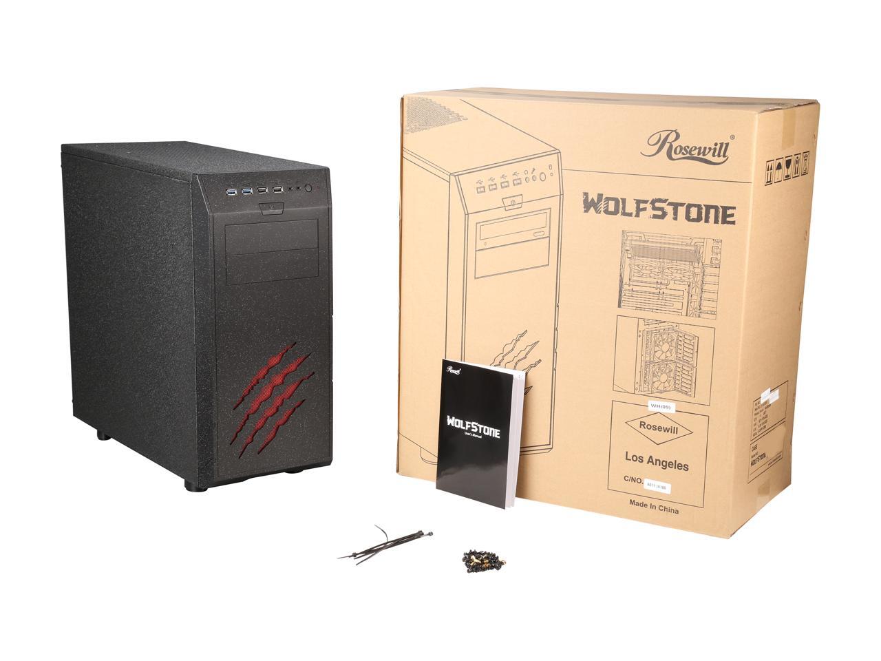 Rosewill WolfStone ATX Mid Tower Gaming Computer Case, support VGA card length up to 340mm, come with four fans - 2x Front 120mm Fan, 1x Rear 120mm Fan, 1x Top 140mm Fan