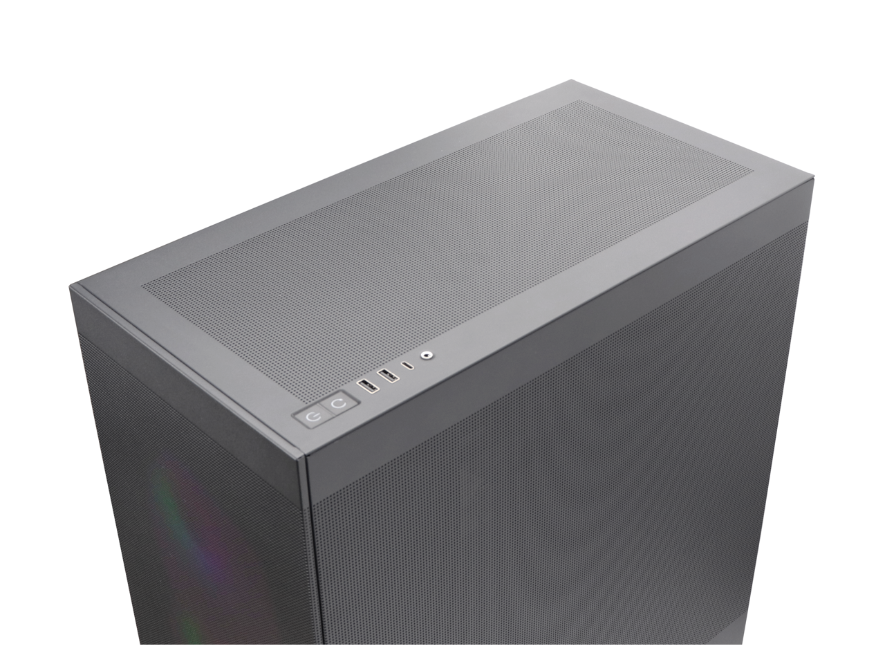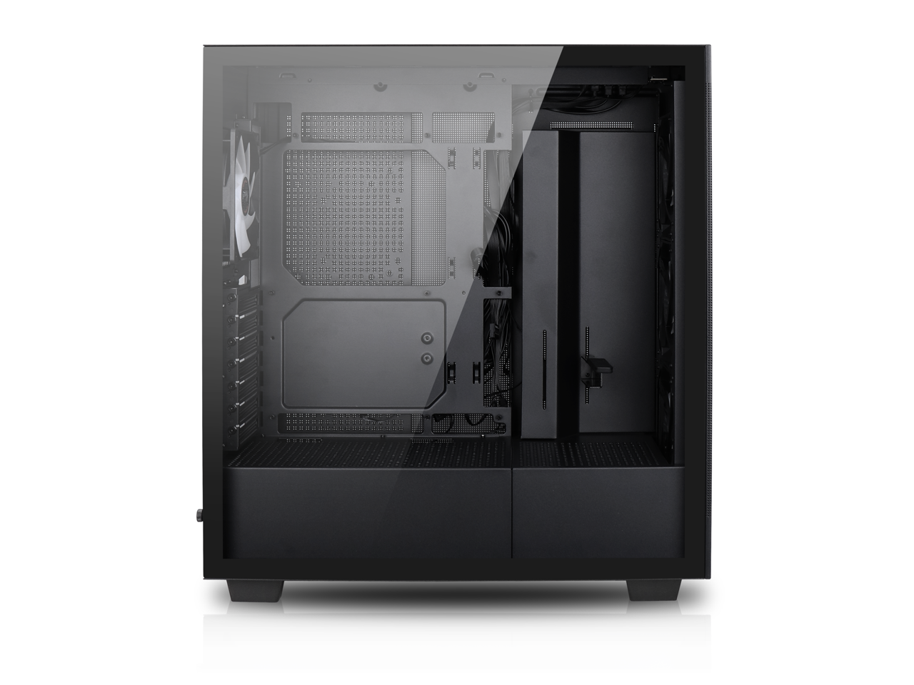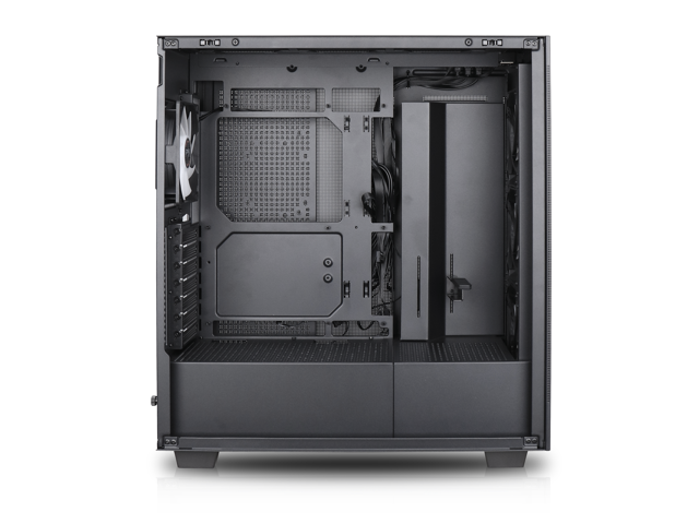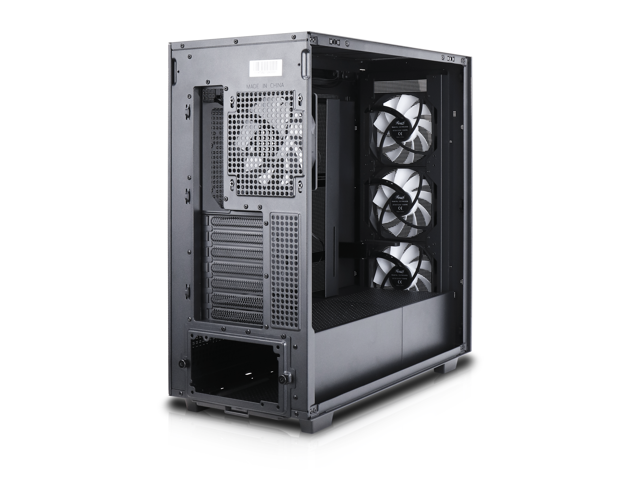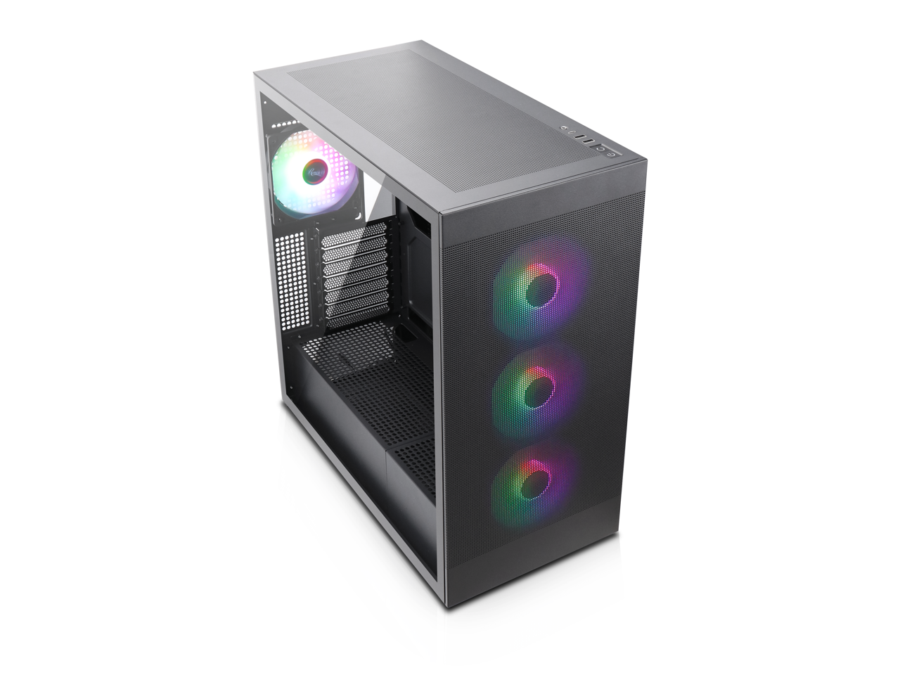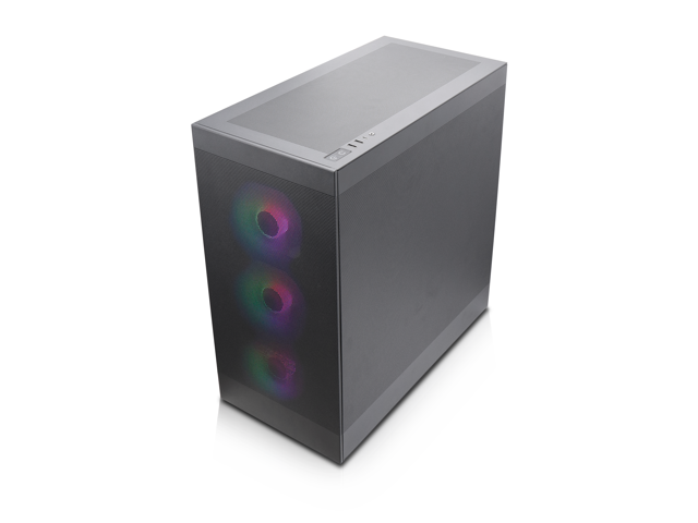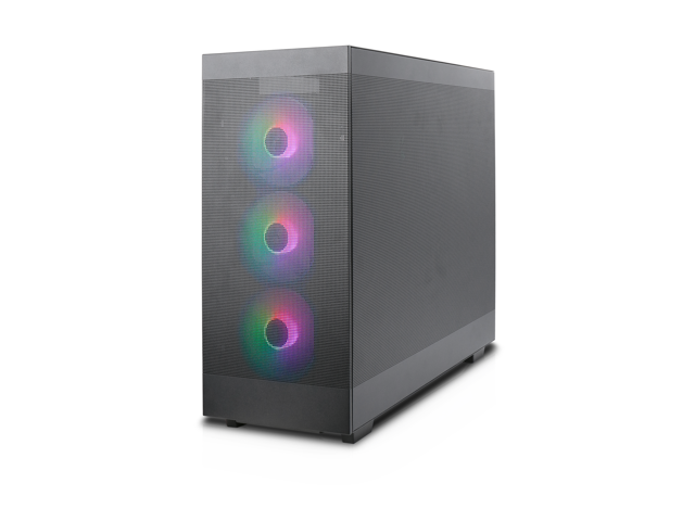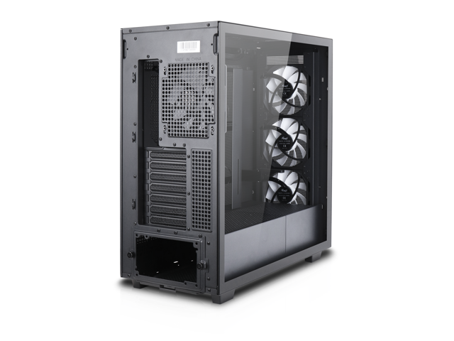 - Interchangeable Side Panels: The left glass panel and right mesh panel are swappable, allowing for customizable aesthetics and improved airflow based on user preference and build requirements."