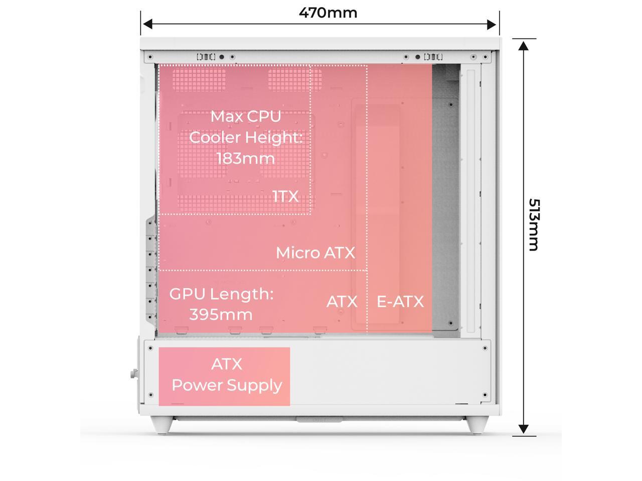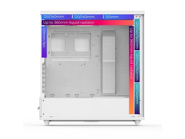 Experience efficient cooling with pre-installed 2x 160mm and 1x 140mm PWM ARGB fans. Support for up to 7x 120mm or 6x 140mm fans and multiple radiators, including 360mm radiators in the front and top, allows you to customize your cooling solution to meet your specific needs.