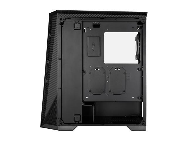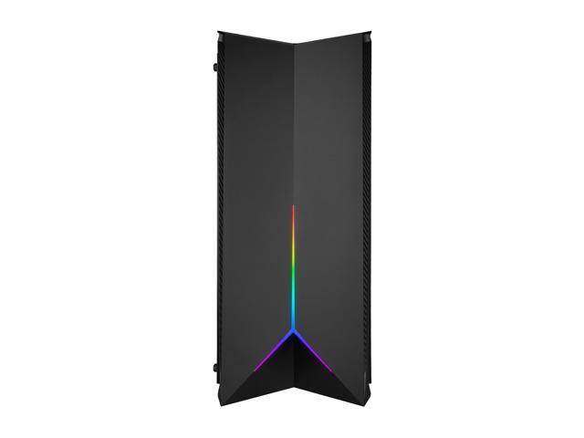 Distinctive Front Panel: Engineered from carbon fiber-like black steel and tempered glass that enhances PC case exterior while an embedded RGB LED light strip highlights the smooth, angular edges of the front panel; toggle between 10 hardware-controlled backlight modes and sync colors with the included RGB fan