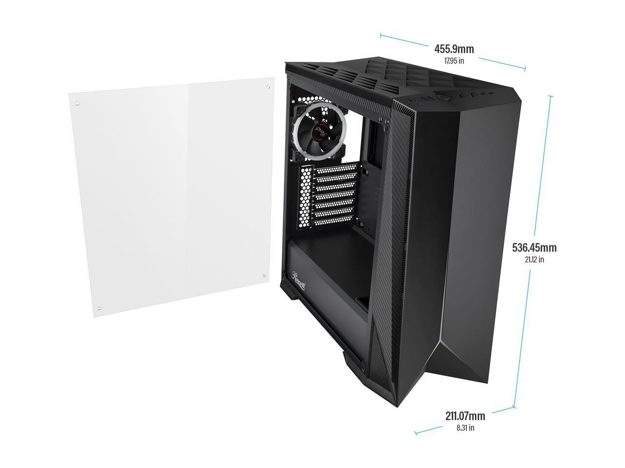 Extreme Ventilation: Designed with top and side vents for superb airflow as well as panel aesthetics; includes three 120mm case fans to keep system temperatures low and supports massive liquid cooling potential via optional 360mm radiator in front or 280mm on top