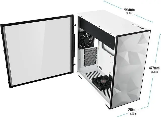 Instantly elevate your PC build with the PRISM S, a series of polished and unique angular white computer cases that embody the ideal combination of minimal and flashy.