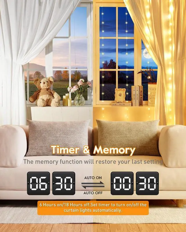 The 9.8x9.8ft string light is ideal for window and wall decoration, bringing a cozy ambiance to your bedroom. Illuminate your nights with warmth and charm, transforming them from dark to delightful.