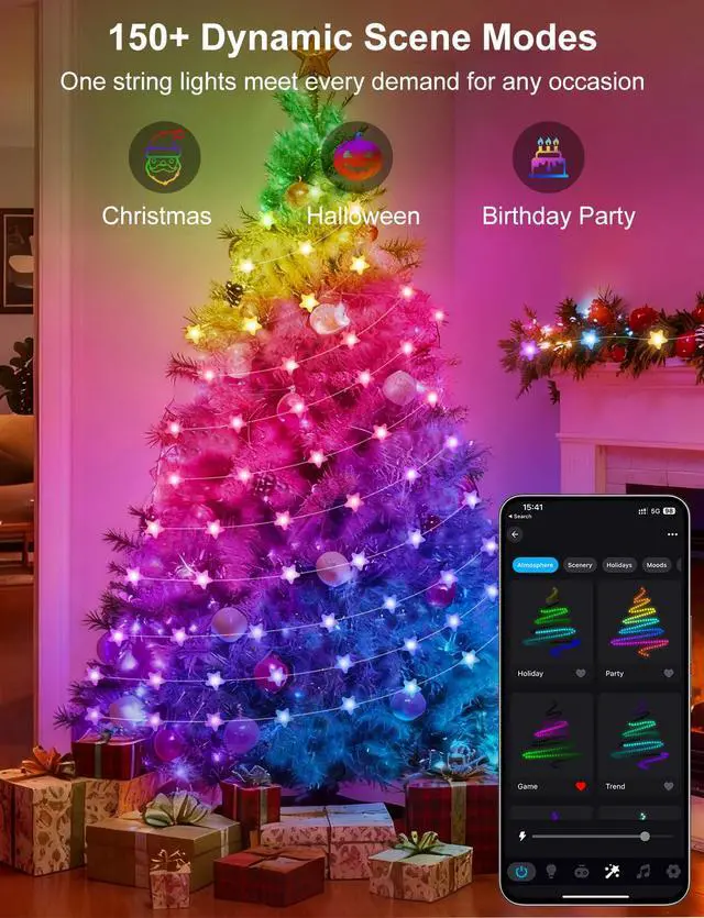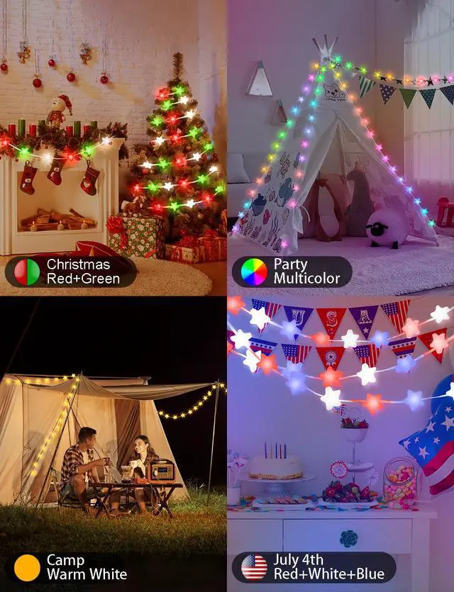 33Ft Smart Star String Lights RGB Built in Chip Lights for Indoor Outdoor decor