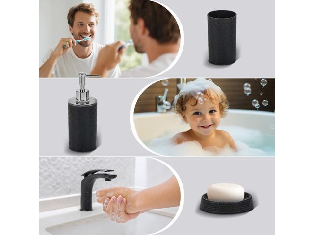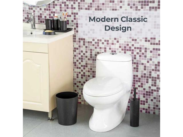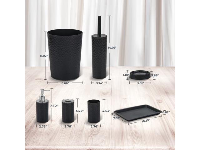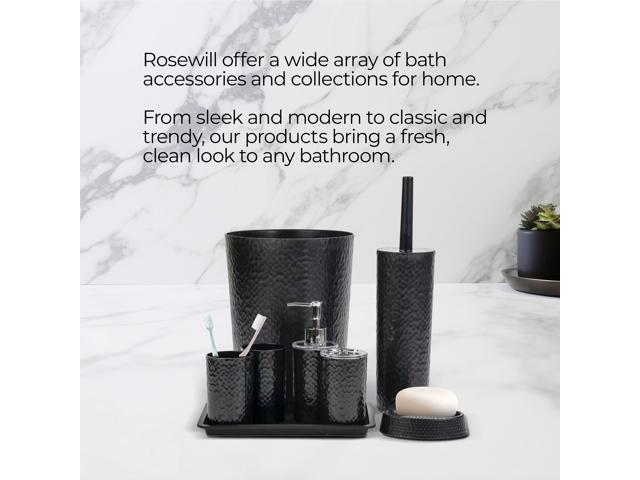 Rosewill Bathroom Accessories 8-Piece Set – Trash Can, Toilet Brush with Holder, Lotion Dispenser, Toothbrush Holder, 2 Toothbrush Cups, Soap Dish & Tray - Black