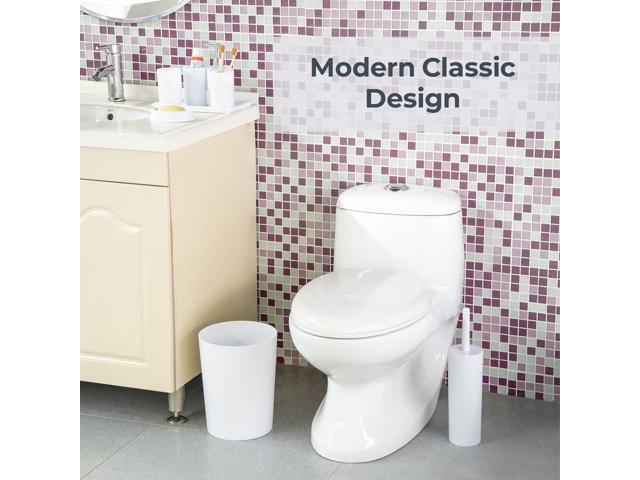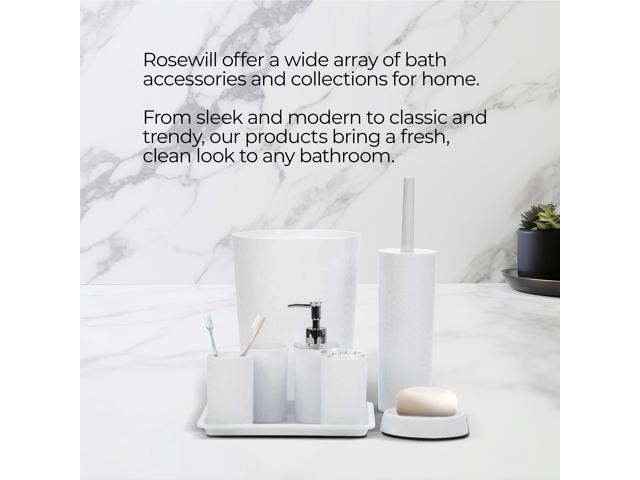 Rosewill Bathroom Accessories 8-Piece Set – Trash Can, Toilet Brush with Holder, Lotion Dispenser, Toothbrush Holder, 2 Toothbrush Cups, Soap Dish & Tray - White