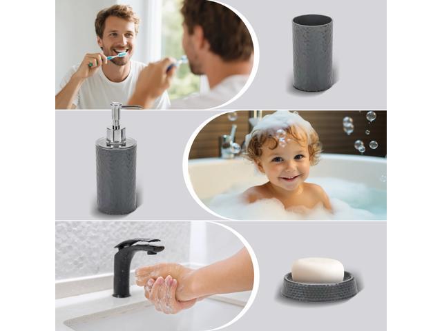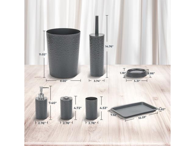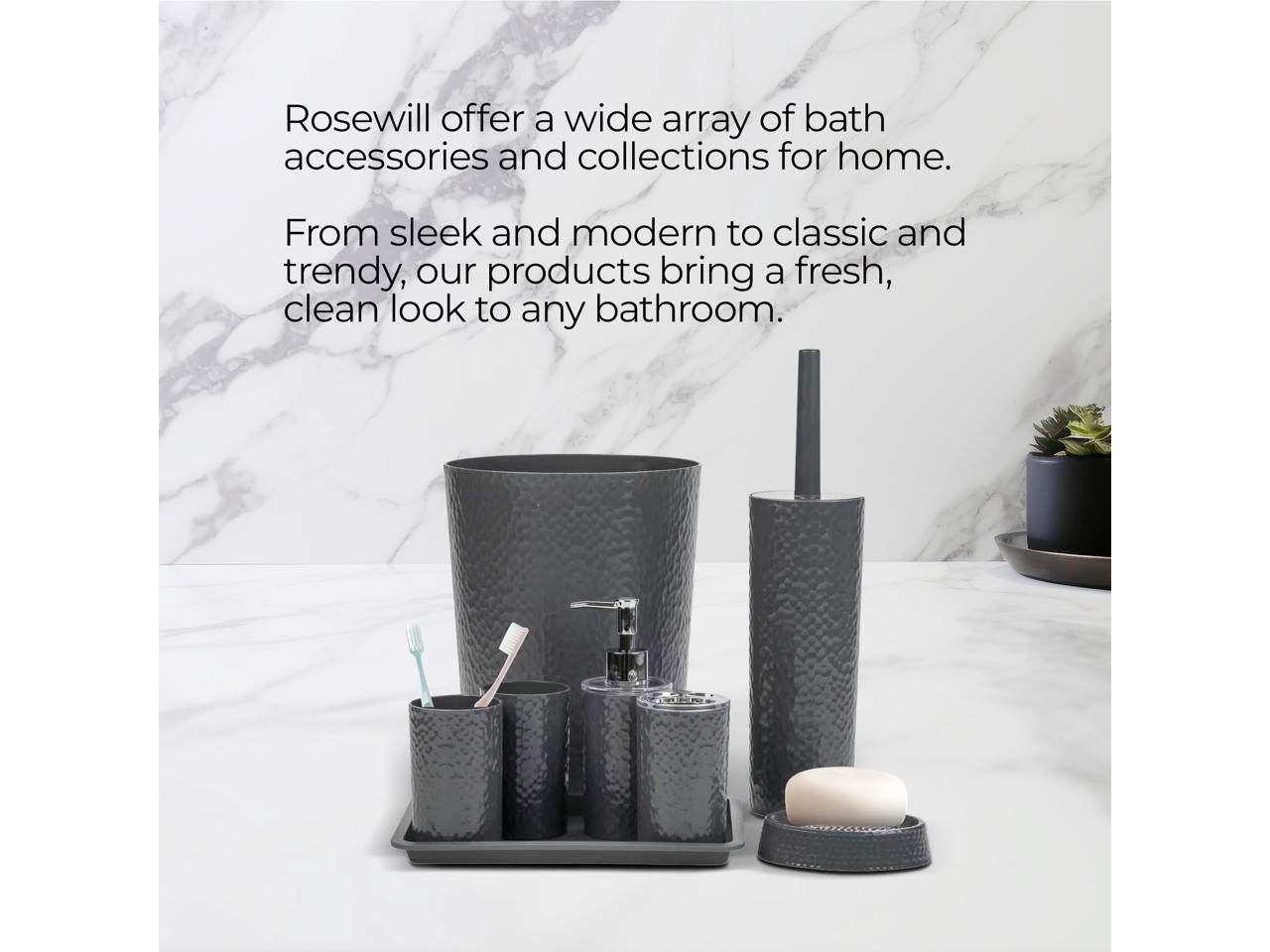 Rosewill Bathroom Accessories 8-Piece Set – Trash Can, Toilet Brush with Holder, Lotion Dispenser, Toothbrush Holder, 2 Toothbrush Cups, Soap Dish & Tray - Gray