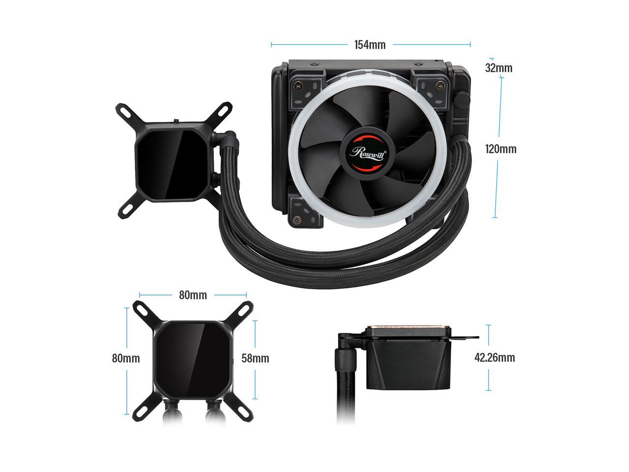 Rosewill PB120-RGB 120mm AIO CPU Liquid Cooler, All-In-One Closed Loop PC Water Cooling, Quiet Addressable RGB Ring Fan, Intel/AMD Compatible, 400mm Sleeved Tubing