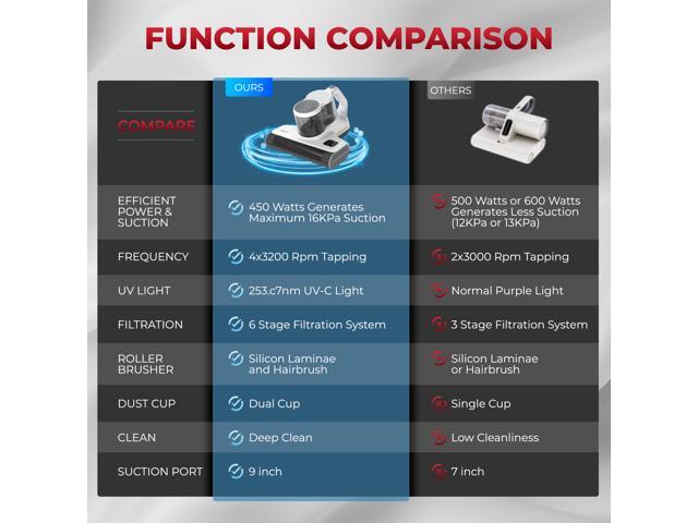 - Powerful Anti-Allergen Removal: Uses 253.7nm UV-C light and ultrasonic waves to eliminate 99.9% of allergens, mites, pet hair, and particles from various surfaces.