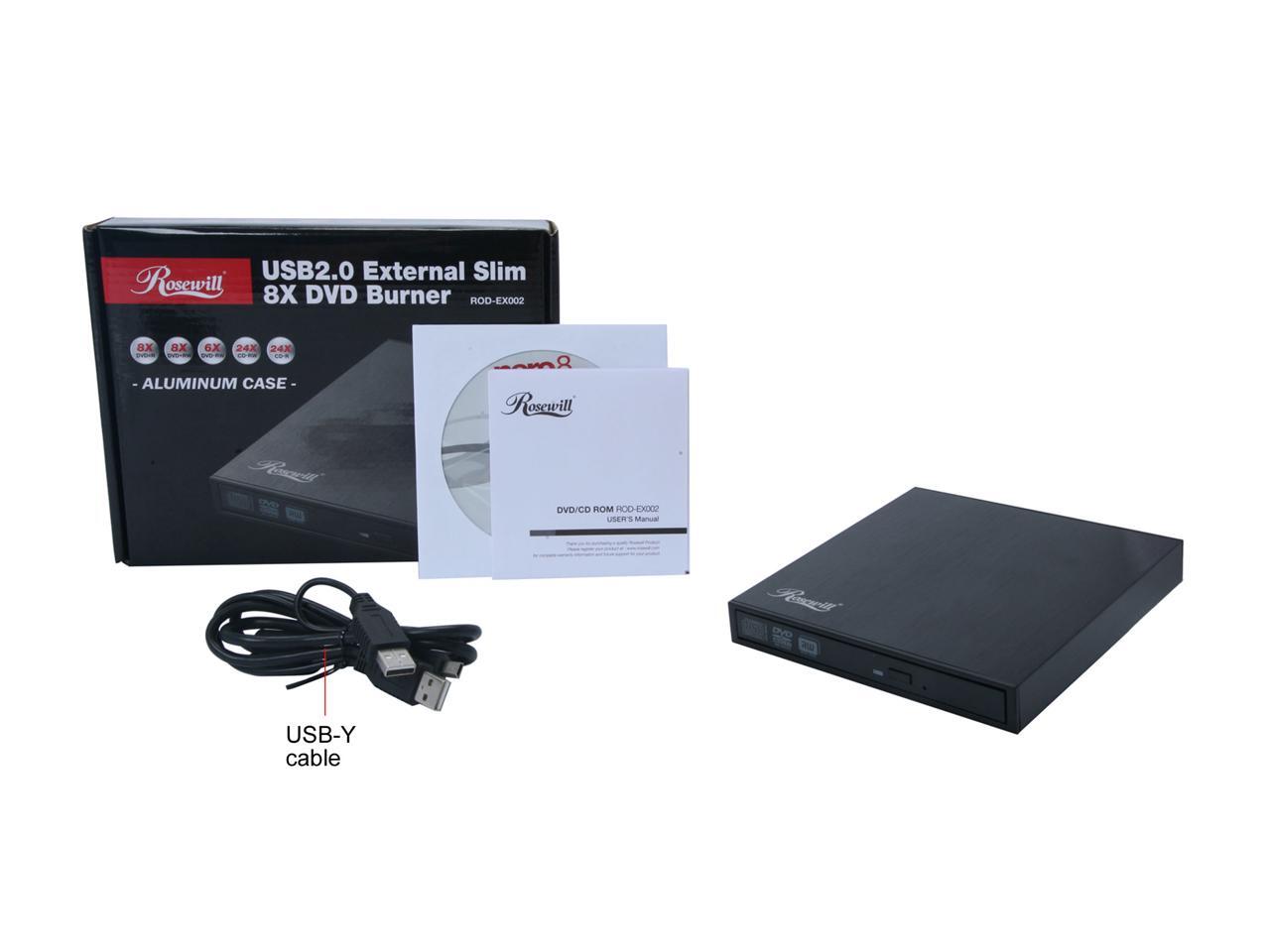 Rosewill Model ROD-EX002 - Slim Aluminum 8X DVD Writer - USB 2.0 - External Optical Drive for PCs - Black