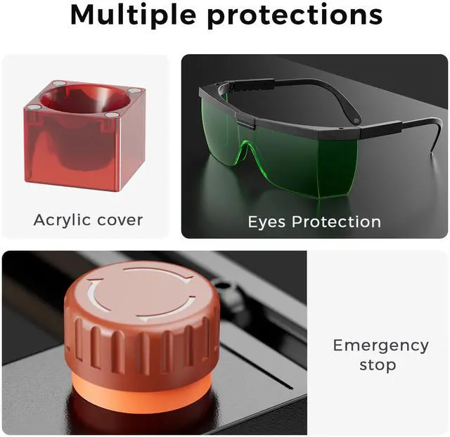 One-Piece Pre-Assembled Design – Ships fully assembled, ready to use out of the box; dovetail fixed-focus laser head allows quick height adjustment for various material thicknesses.
