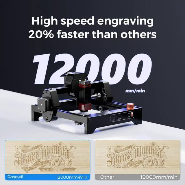 High-Speed 2.5W Laser Engraving – Powered by a 32-bit motherboard with speeds up to 12000mm/min, 20% faster than similar models, ensuring smoother, more precise engraving and cutting.