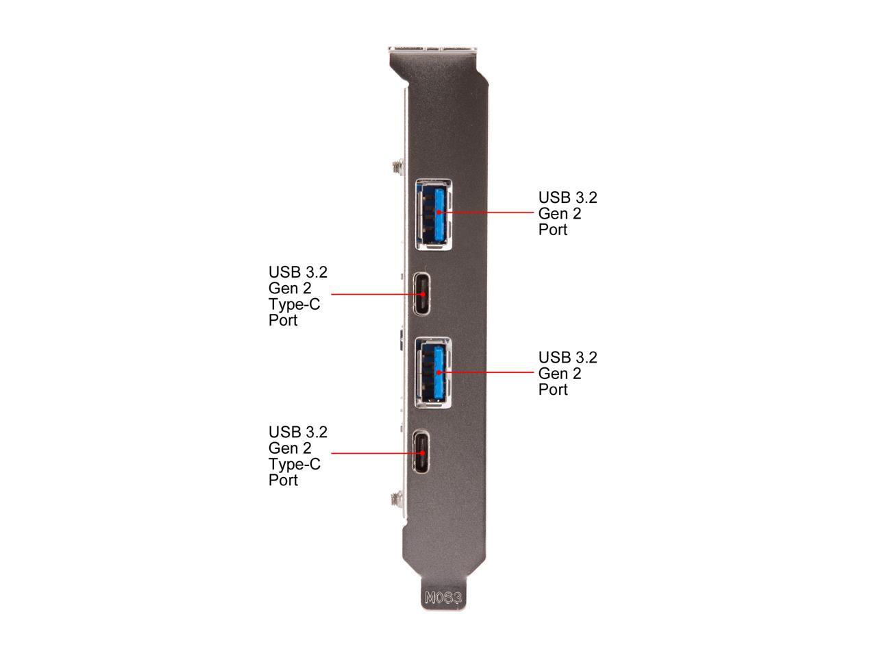 Rosewill RC-20002 4 Ports PCI Express Expansion Card/Adapter 10Gbps PCI Express 2.0 x4 (5.0 GT/s) 2 x USB 3.2 Gen 2 Type-C Female ports, 2 x USB 3.2 Gen 2 Type-A Female ports