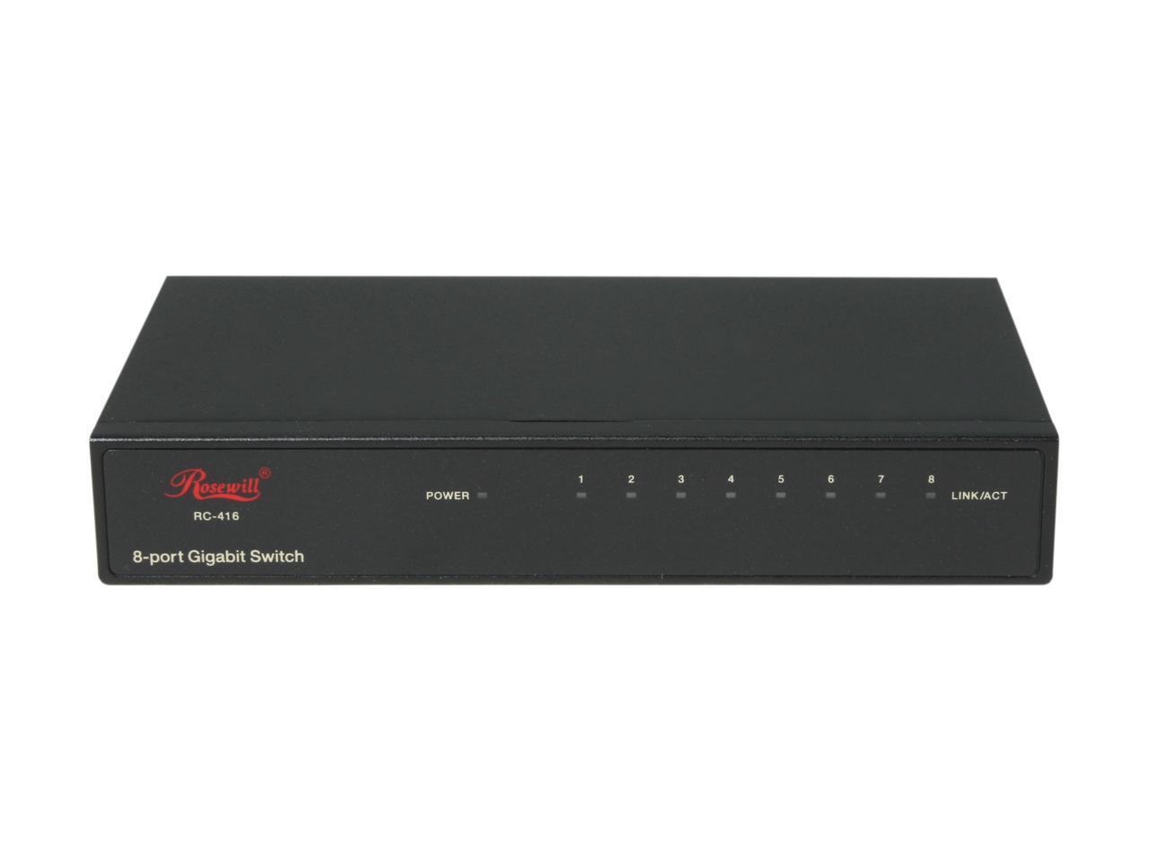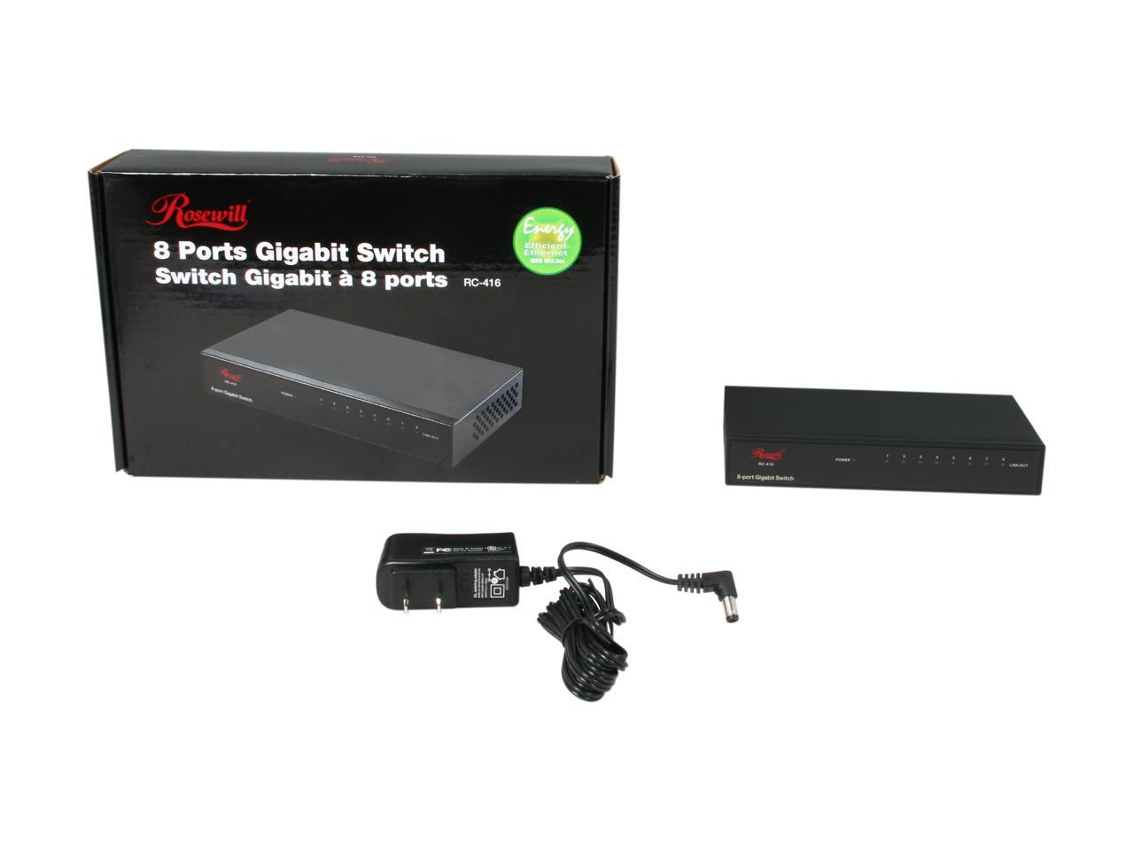 Rosewill RC-416 – 10 / 100 / 1000 Mbps 8-Port Gigabit Green Ethernet Desktop Switch in Metal Enclosure - 3-Year Warranty