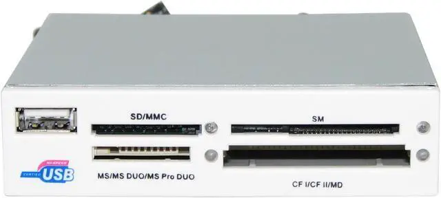 • newegg52-in-1 Card ReaderThe Rosewill RCR-102-W card reader provides an ideal solution for easy and quick access to 52 types of memory cards including CF Type I and II, Microdrive, SD, MMC, SM, MS, MS Pro, and more.