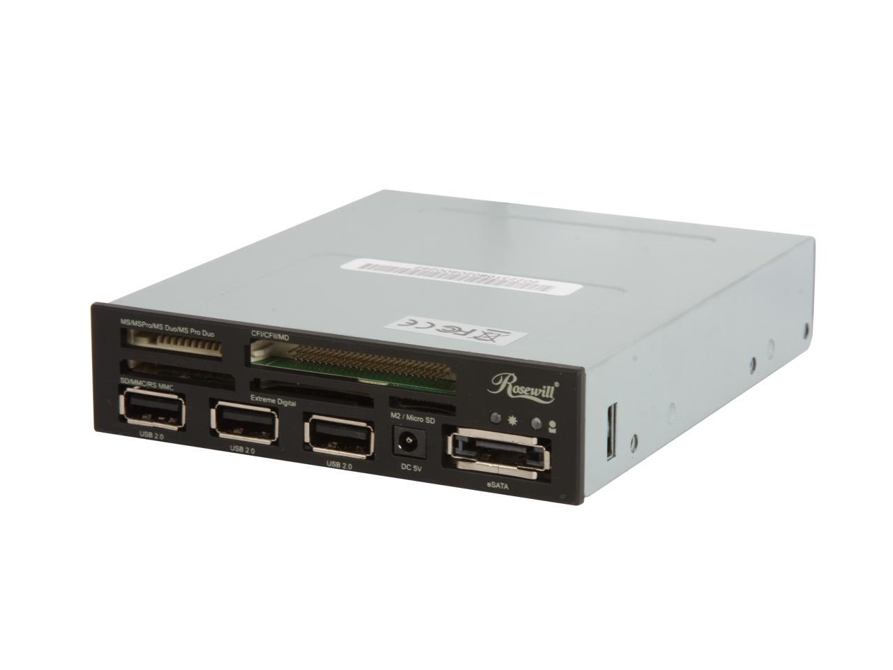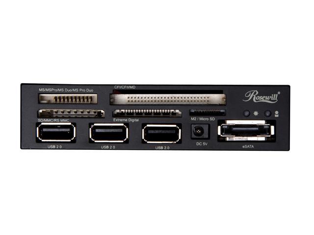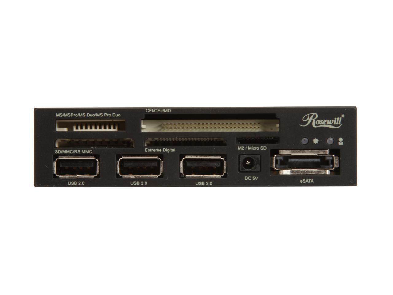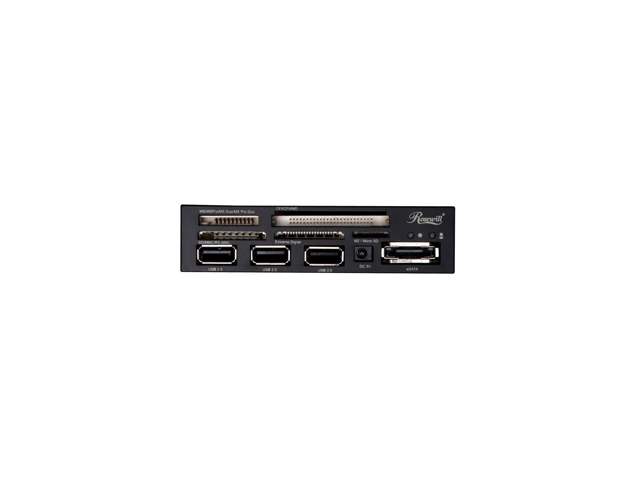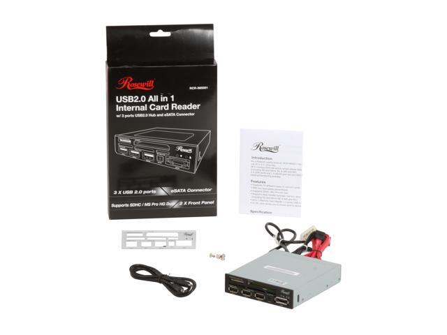 Rosewill RCR-IM5001 - 75-in-1 Internal Card Reader Hub - 3 x USB 2.0 Ports / eSATA Port / Extra Silver Face Plate / Molex Power Cable - Fits 3.5” Drive Slot