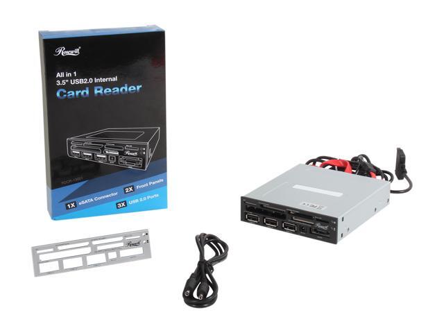 Rosewill RDCR-13001 USB2.0 All in One Internal Card Reader w/ 3 ports USB2.0 Hub / eSATA port / Extra silver fascia panel / SATA Power