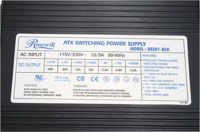 Rosewill RE501-BLK 500 W ATX12V v2.03 Aluminum Power Supply