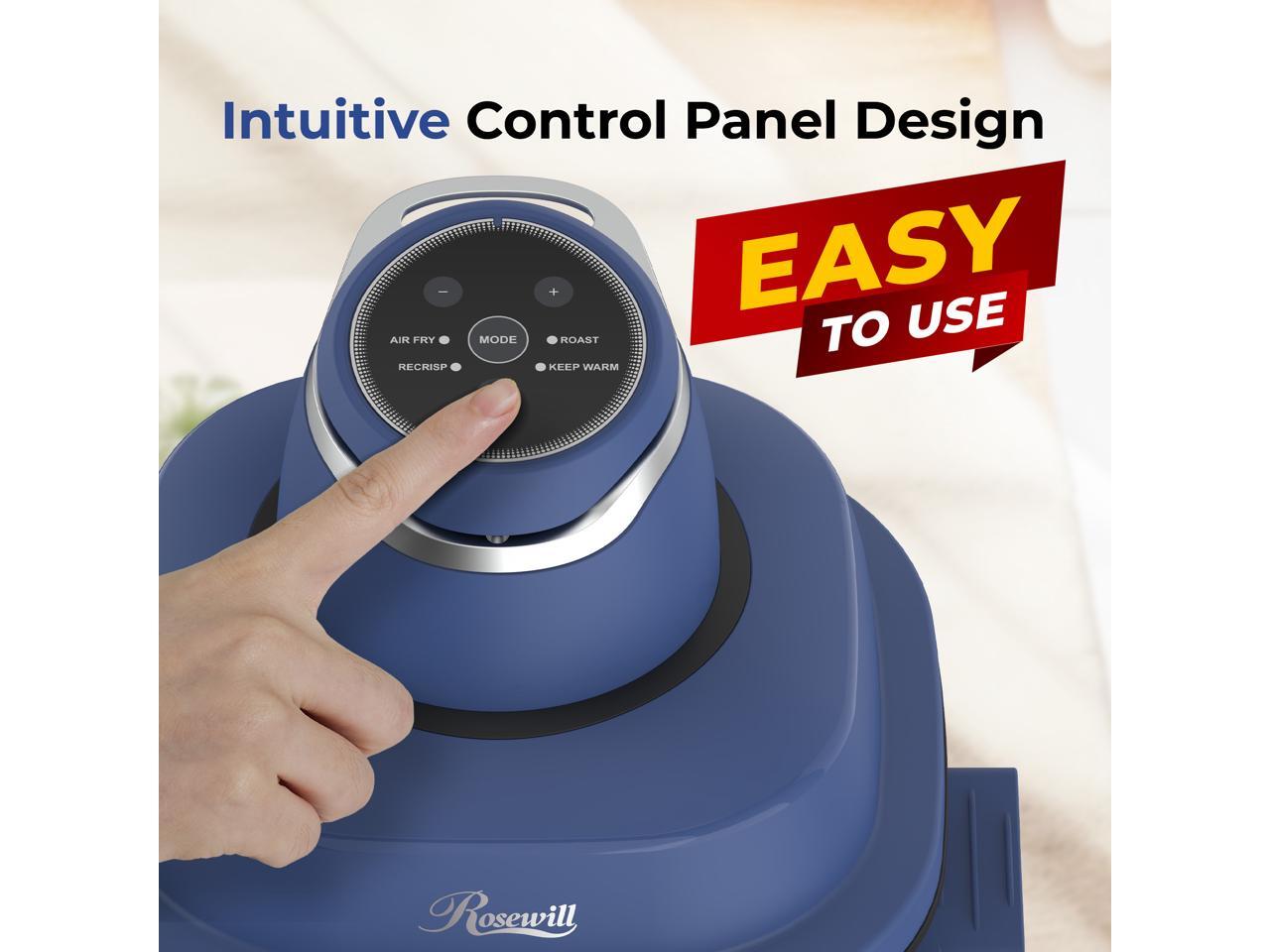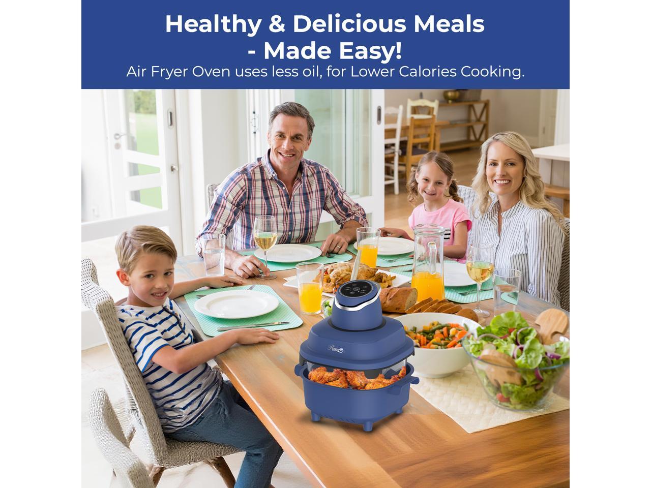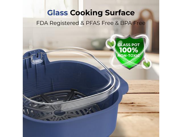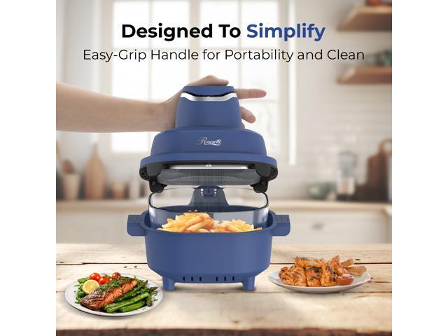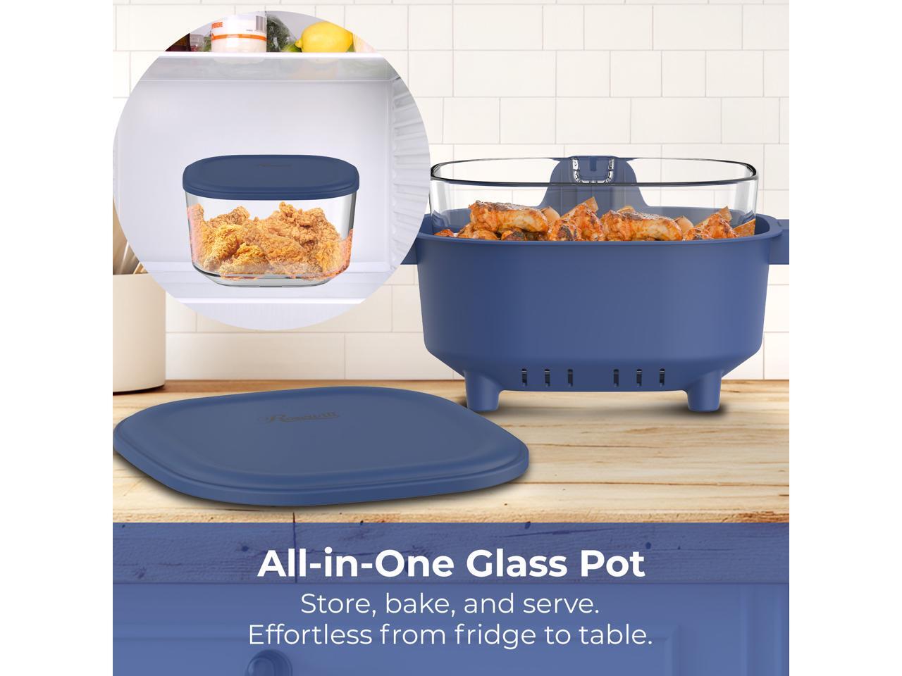 Rosewill 4-in-1 Portable Glass Air Fryer, 4.7QT Transparent Glass Cooking Pot with Storage Lid & Tongs, Compact Smart for Deep Roast, Recrisp, Keep Warm – Navy Blue