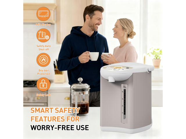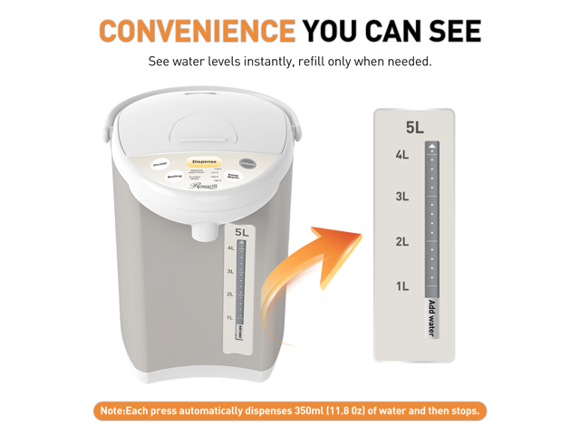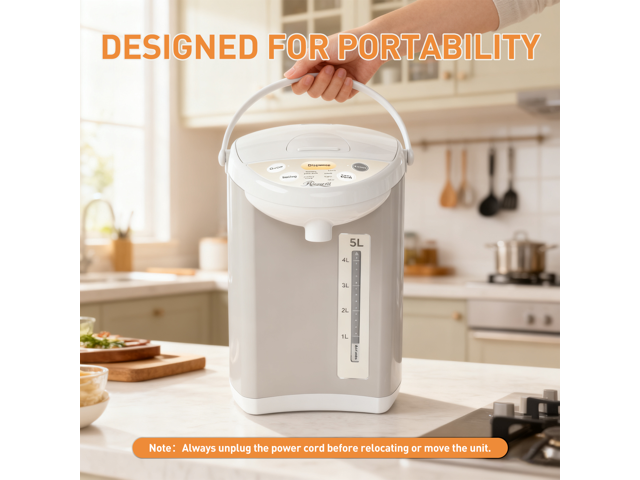 - Large Capacity & Fast Boiling: Powered by 750W, it boils 5L of water rapidly - enough for about 20 cups. Perfect for home or office, it also maintains temperature all day.