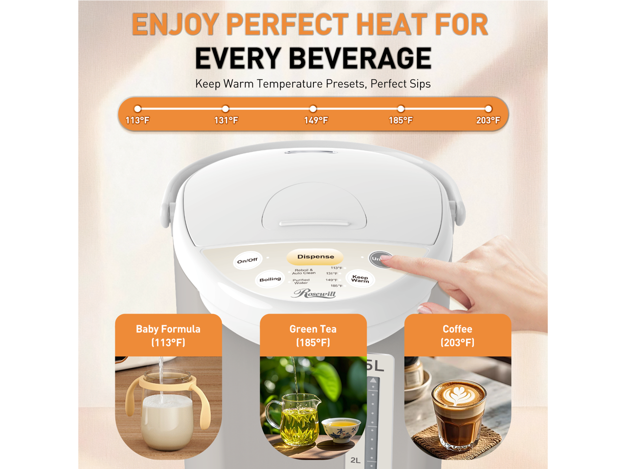 Rosewill Electric Hot Water Boiler and Warmer, Hot Water Dispenser with Auto Dispense Function, 5 Temperature Settings, 5.0 L (5.3 QT) - 2025 New Release