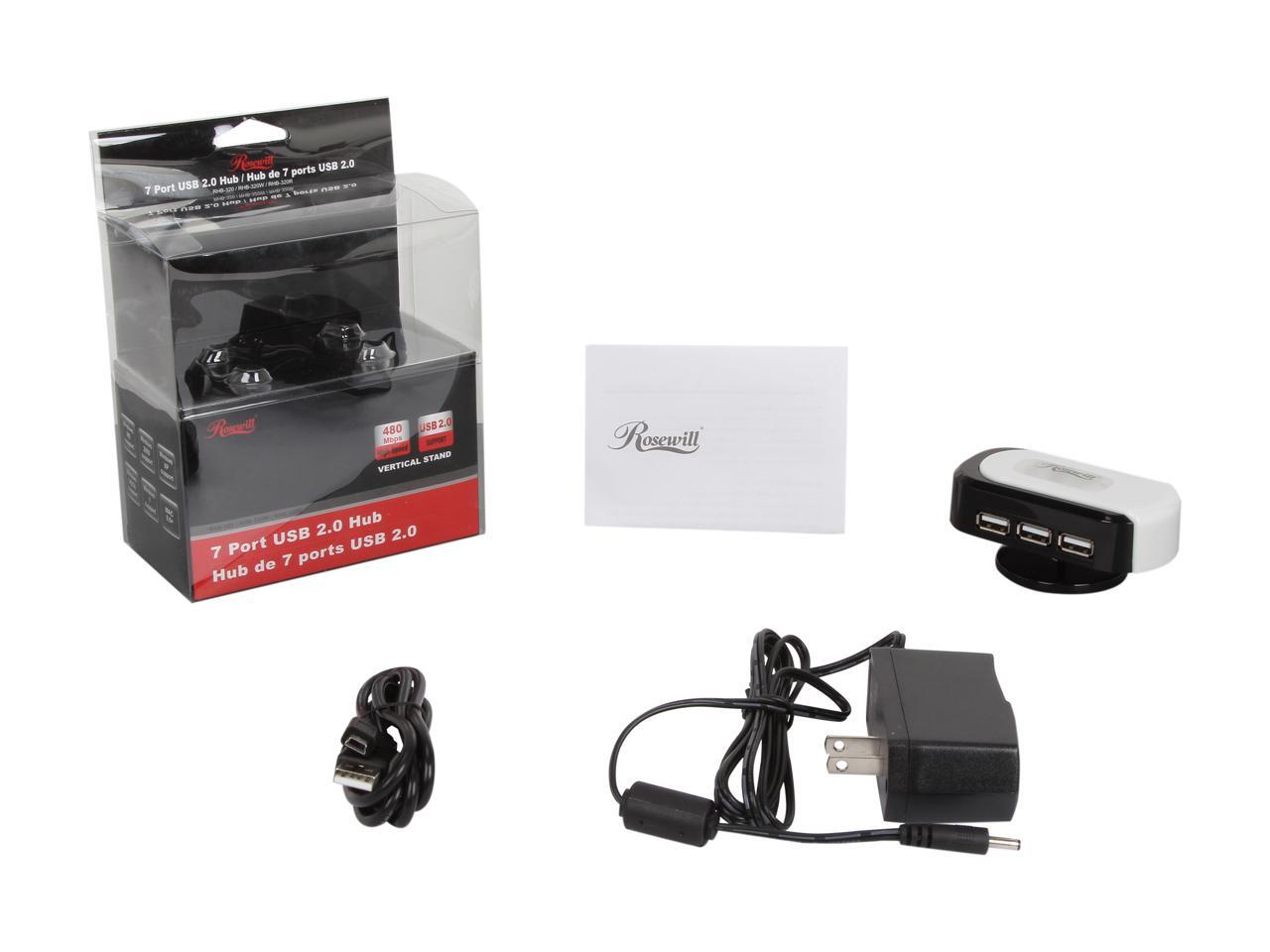 Rosewill RHB-320W - 7-Port USB 2.0 / 1.1 Hub with Power Adapter - White