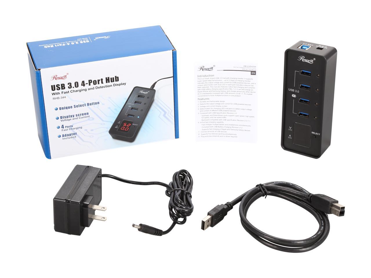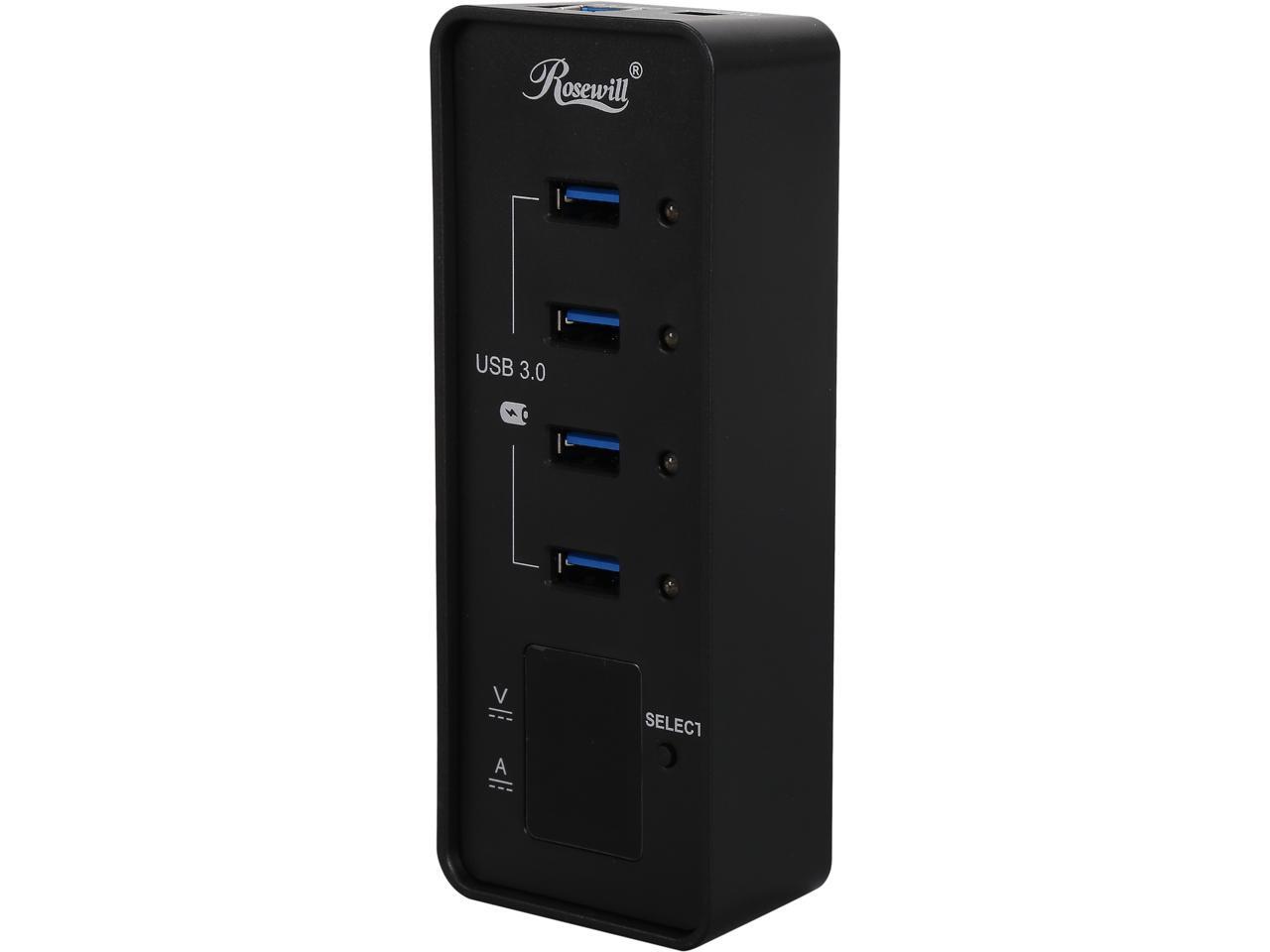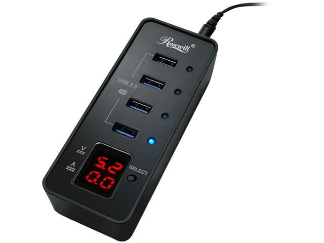 Rosewill RHB-344 USB 3.0 4-Port Hub and Fast Charging with Voltage & Current Display Screen For Each Port Detection