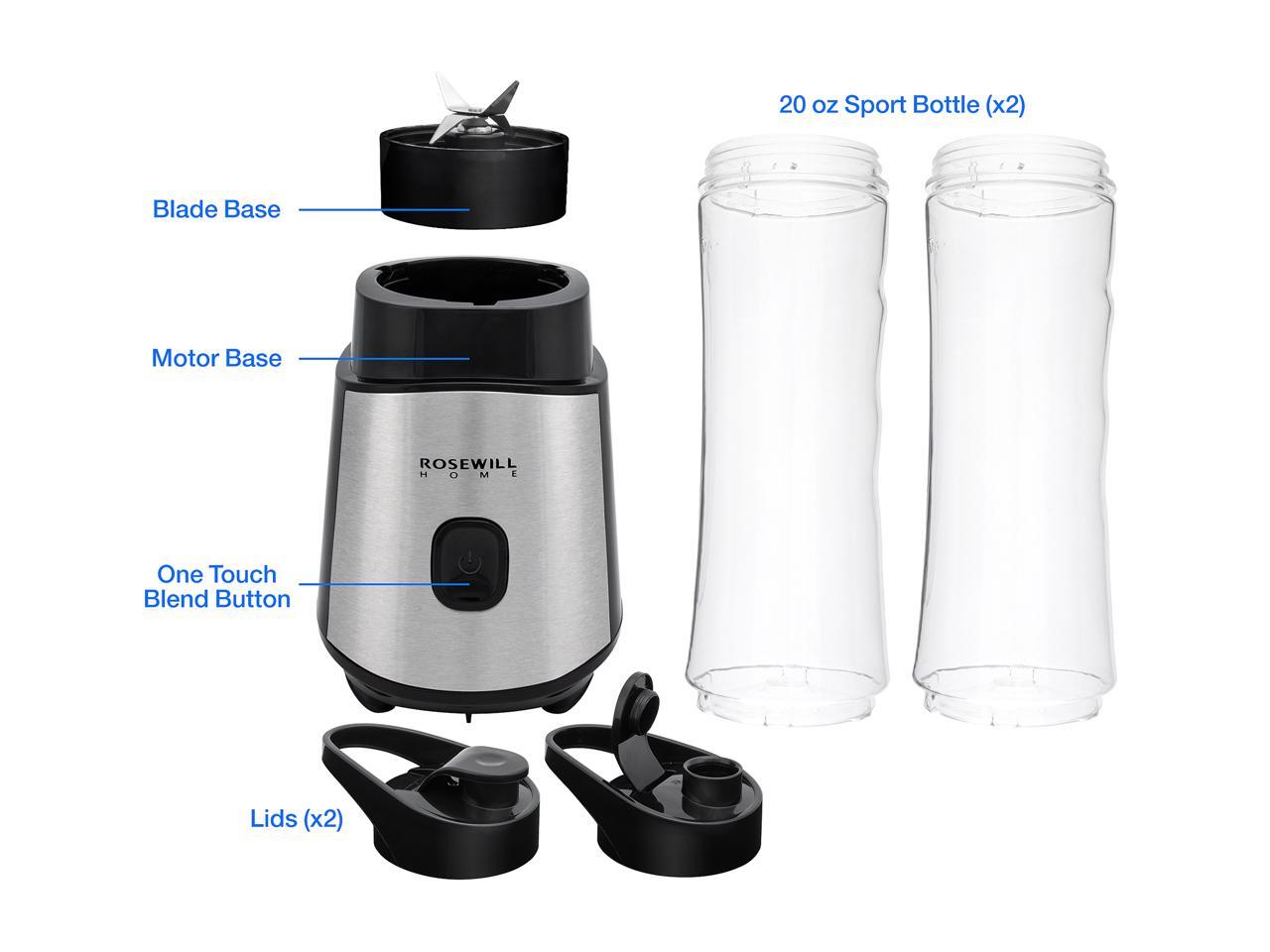 Rosewill Single Serve Personal Blender for Smoothies, Juices & Shakes, Includes Two 20 oz. BPA-Free Travel Bottles, 300W, Black - (RHBL-18002)