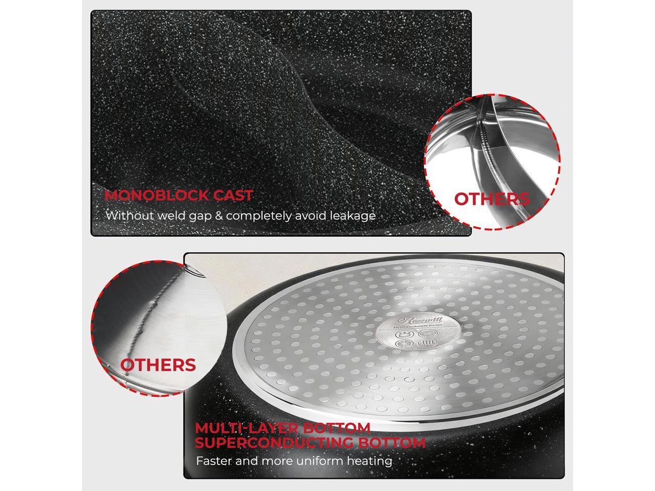 - Premium Non-Stick Coating - Crafted from high-performance die-cast aluminum for fast, even heat distribution, the pot features a food-grade scratch-resistant non-stick interior. This allows you to cook with minimal oil for healthier meals and ensures effortless cleanup.