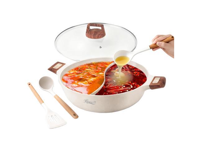 Rosewill 4.2QT Double Flavor Non-sticking Shabu Shabu Hot Pot with Divider, 13 inch Divided Stockpot for Cooking, Hot pot for Induction Cooktop and Gas Stove, Electric Burner, Silicon Soup & Ladle Included - Beige