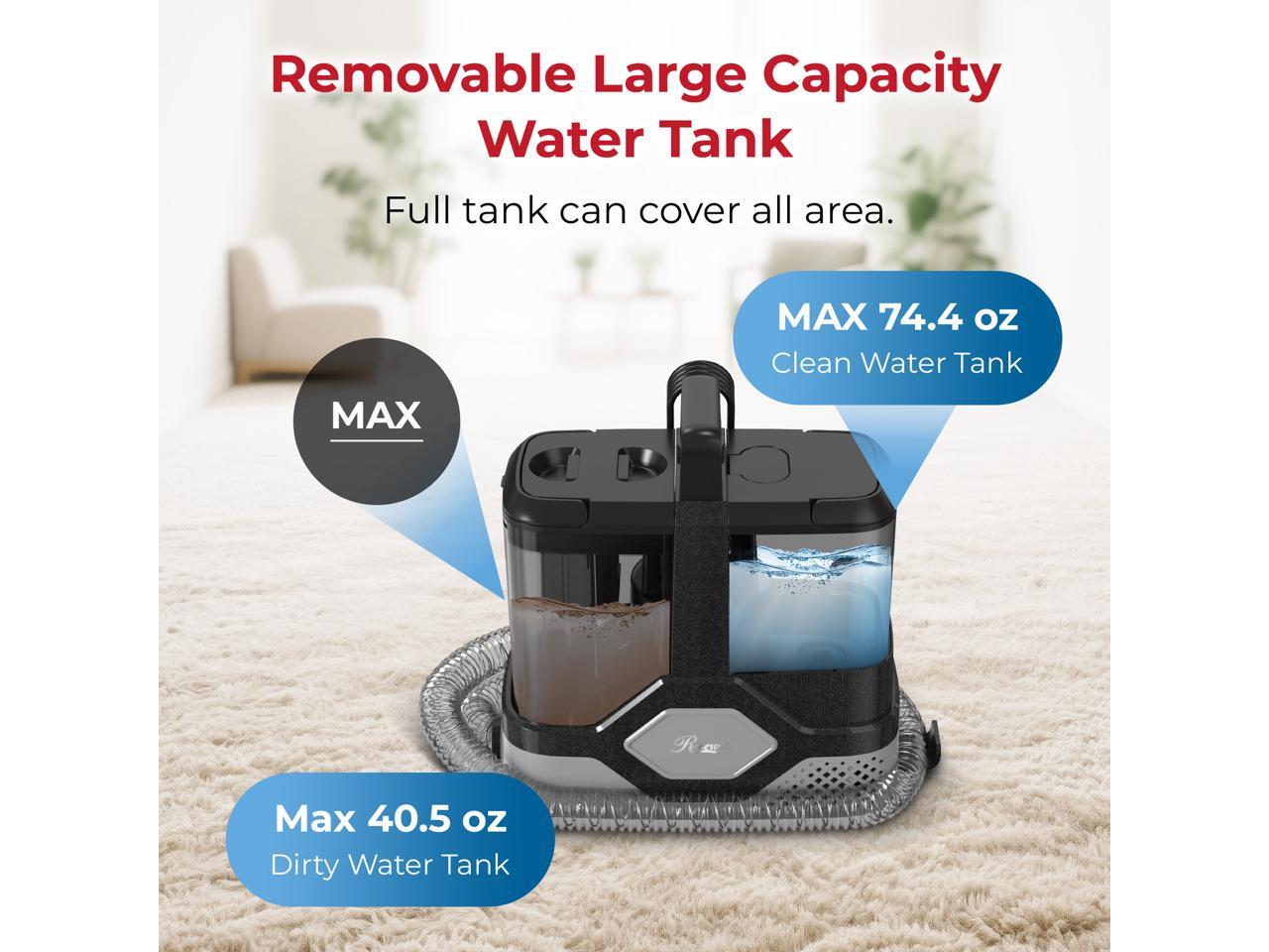 - Large-Capacity Dual Tank System: Features separate 74.4 oz clean and 40.5 oz dirty water tanks for extended cleaning sessions without frequent interruptions for refilling or emptying.
