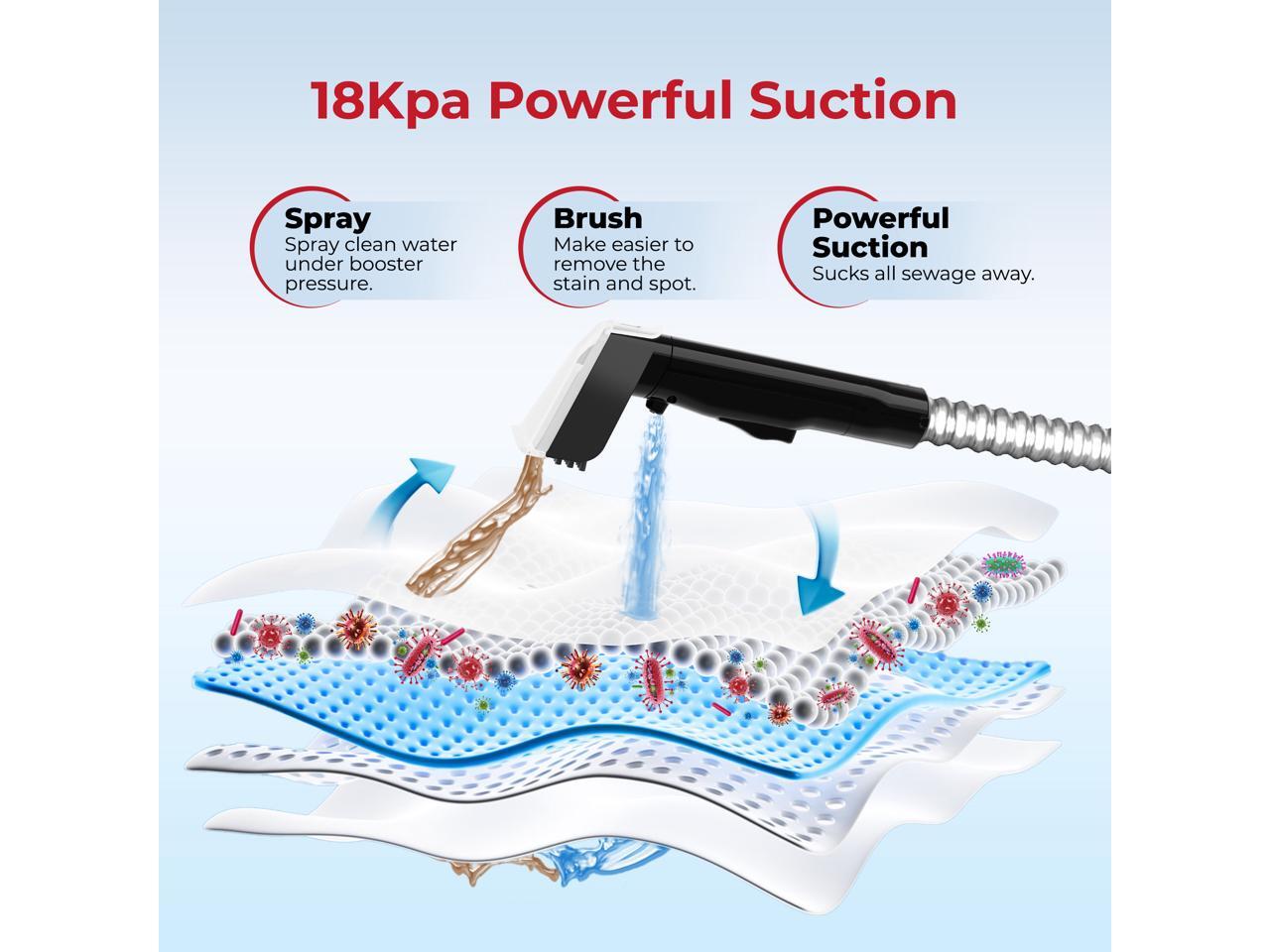 - 4 Specialized Brush Attachments: Includes standard, wide, T-type, and self-cleaning brushes for stubborn stains, large areas, tight corners, and gentle fabric care.
