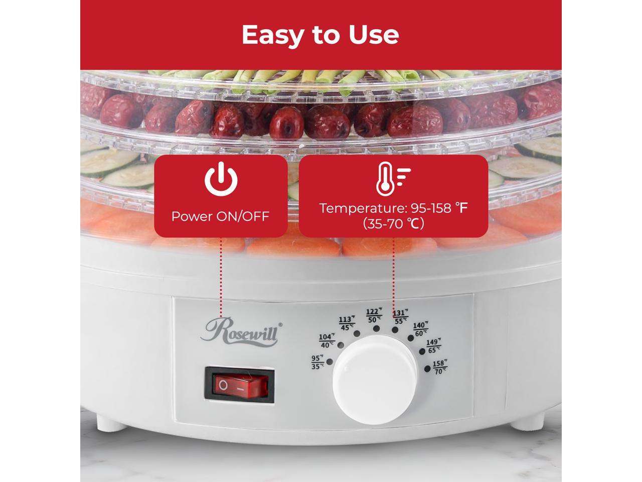 Rosewill Food Dehydrator Machine, 5 BPA-Free 12.6’ Trays, Adjustable Temperature Controls | 95-158°F | 350W, Jerky, Herbs, Fruit, Veggies, Dried Snacks