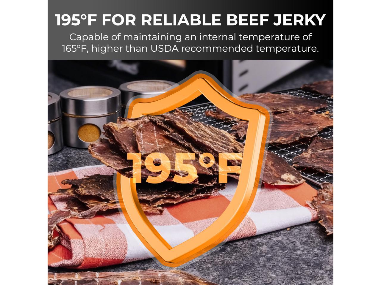 - PRECISE TEMPERATURE CONTROL & ADJUSTABLE TIMER Temperature Control: This food dehydrator features a wide temperature range from 95°F to 195°F and a 0.5-48 hour adjustable timer, allowing you to easily control the dehydrating process for perfect results. The automatic shut-off ensures safety and convenience, making it ideal for all your dehydrating needs.