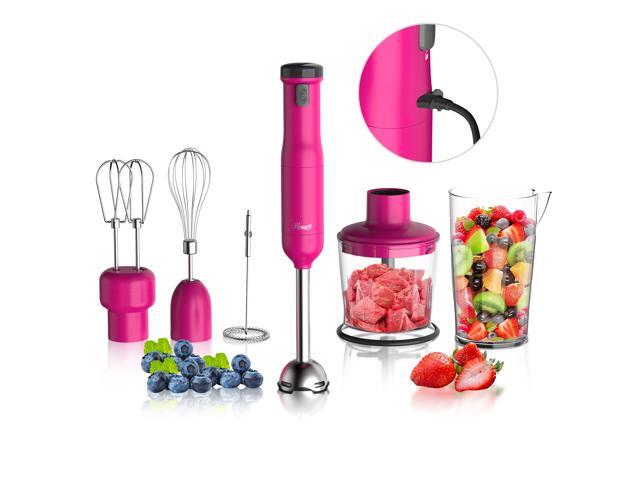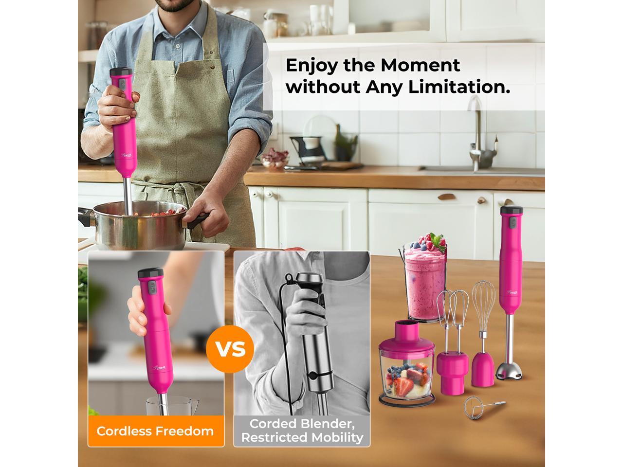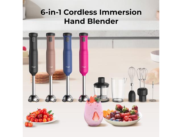 Rosewill 6-in-1 Multi-Speed Cordless Rechargeable Immersion Hand Blender, Heavy Duty Motor - Stick Blender, Beaker, Whisk, Chopper, Dual Beater, Milk Frother - For Smoothies, Baby Food, Soup - Rose