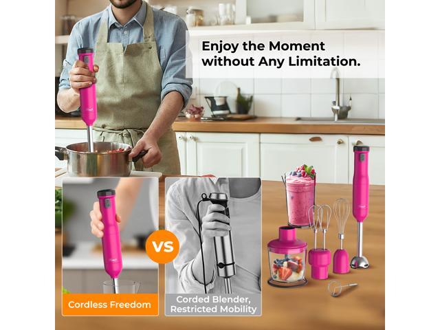 - Enjoy unrestricted movement with this lightweight, rechargeable immersion blender. Perfect for use in the kitchen, outdoors, or on the go—no outlet needed.