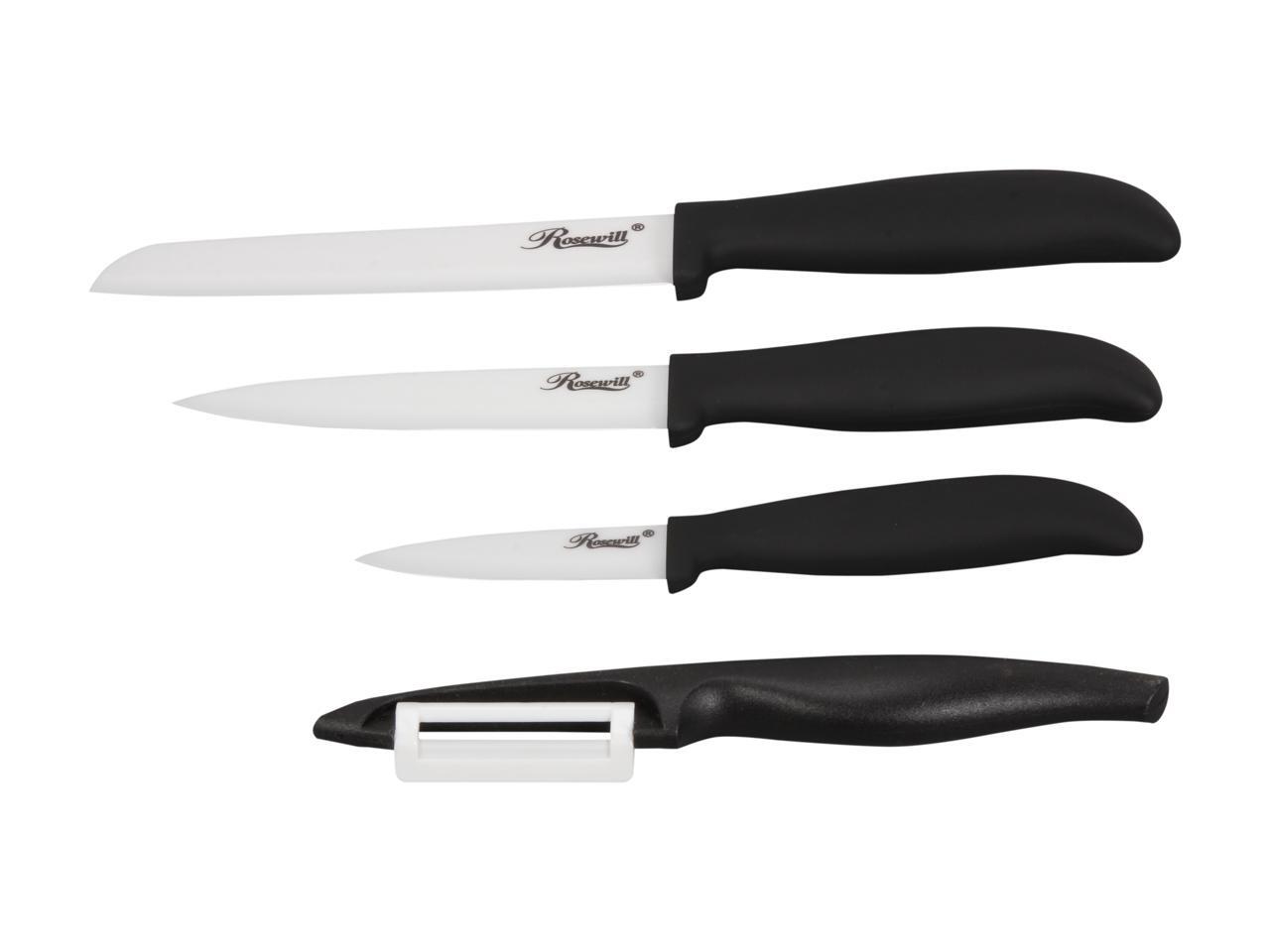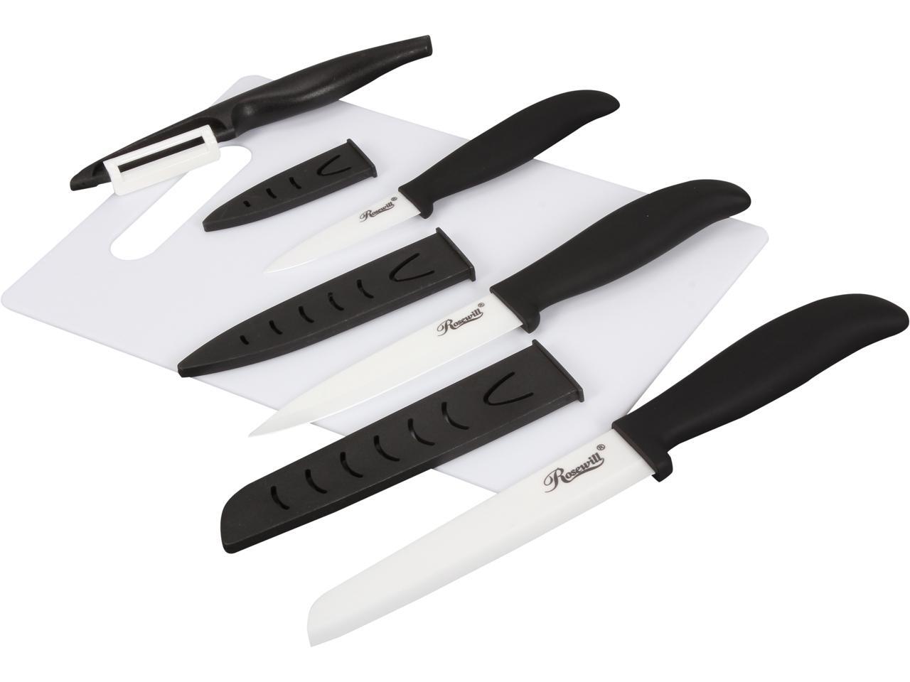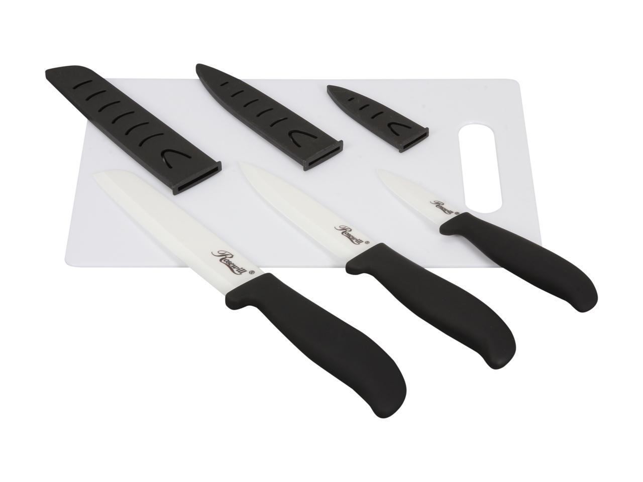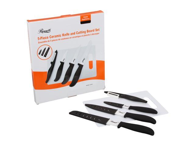 Rosewill RHKN-13002 5-Piece Ceramic Knife and Cutting Board Set - Black Handle