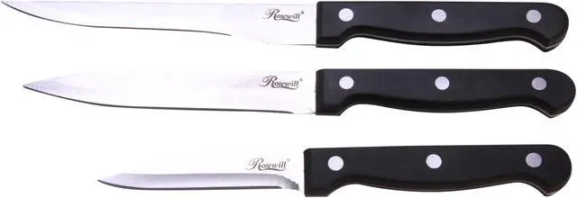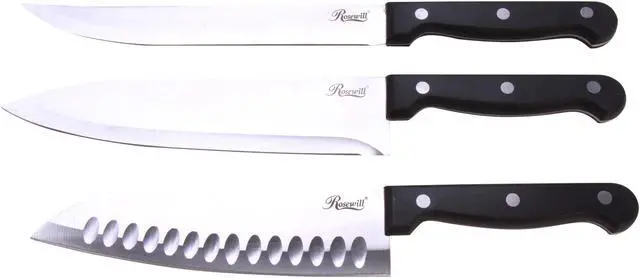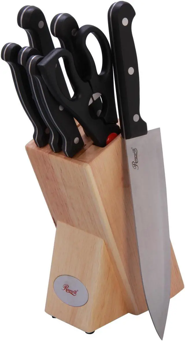 The Rosewill RHKN-13003 8-Piece Knife Set provides all the necessary knives for any kitchen – task from slicing and dicing to chopping. The hollow ground blade holds an extremely sharp edge, while stainless steel construction ensures precision and durability. A wood cutlery block safely stows the knives when not in use. (Hand washing is recommended.)