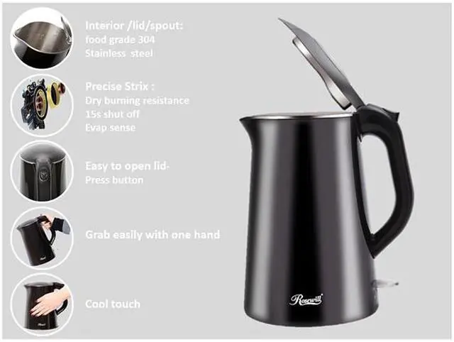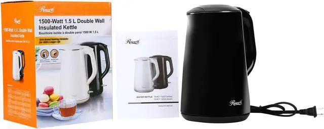 Rosewill RHKT-15002 1500-Watt 1.5L Double Wall Insulated Stainless Steel Pot Tea Water Electric Kettle, Black