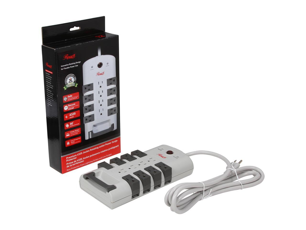 Rosewill RHSP-13007 Rotating Power Surge Block, 180° Rotating 12-Outlets, 2-in-1 Power and Circuit Breaker Switch, 4230 Joules