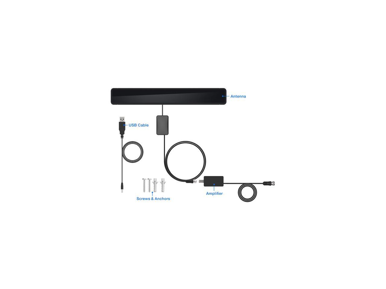 Rosewill HDTV RV Camper Indoor Antenna, 50 Mile Range with Amplifier Signal Booster, 5ft Coaxial Cable, Multi-Positional, Supports UHF/VHF, 4K HD and ATSC 3.0 Ready - RHTA-18001