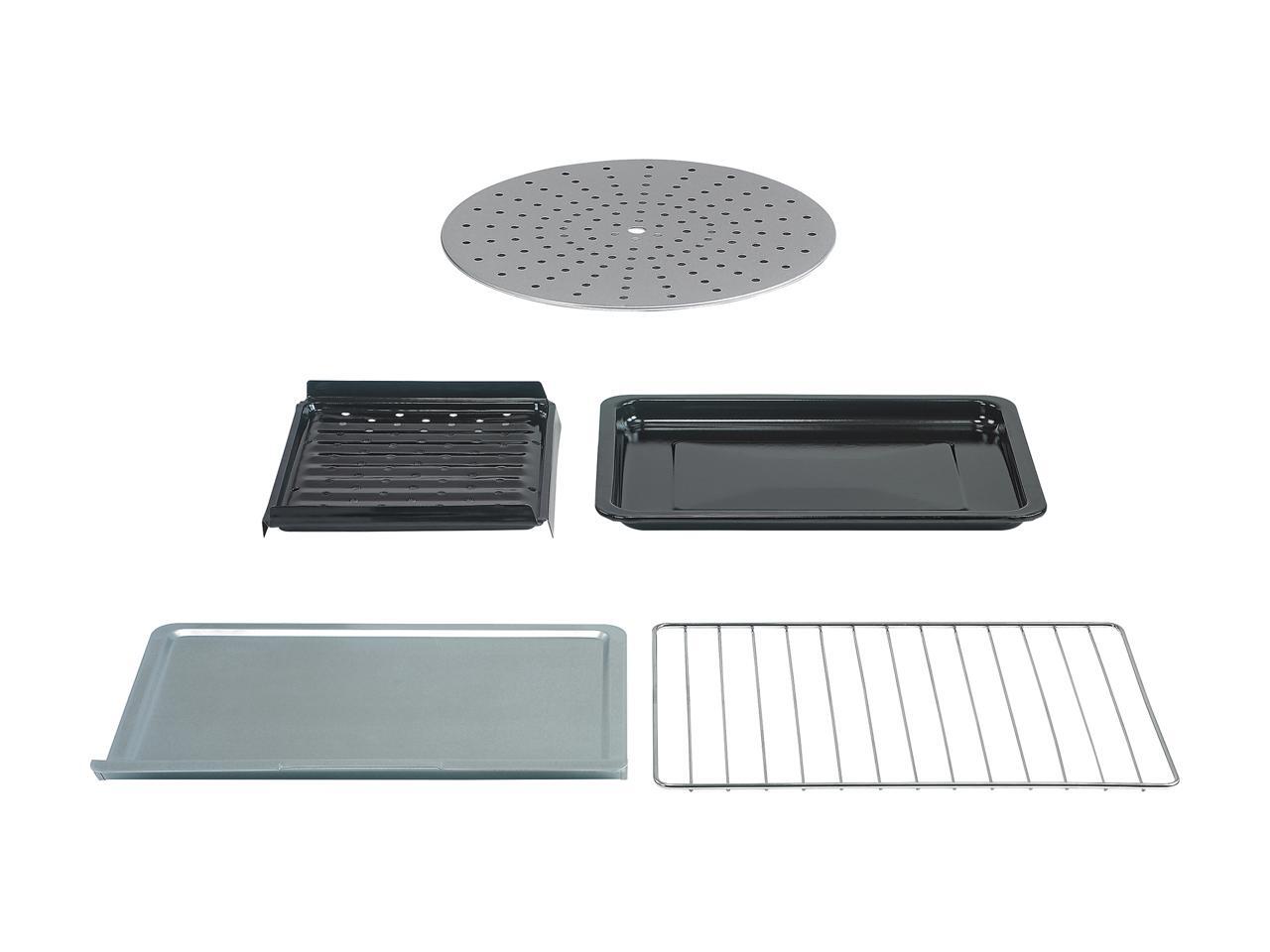 - Included Accessories: Oven Rack, Bake Pan, Crumb Tray, Pizza Pan, Drip Pan